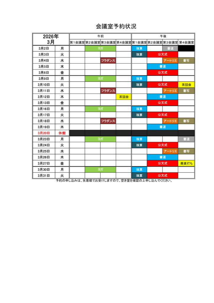 会議室予約状況 2026.03