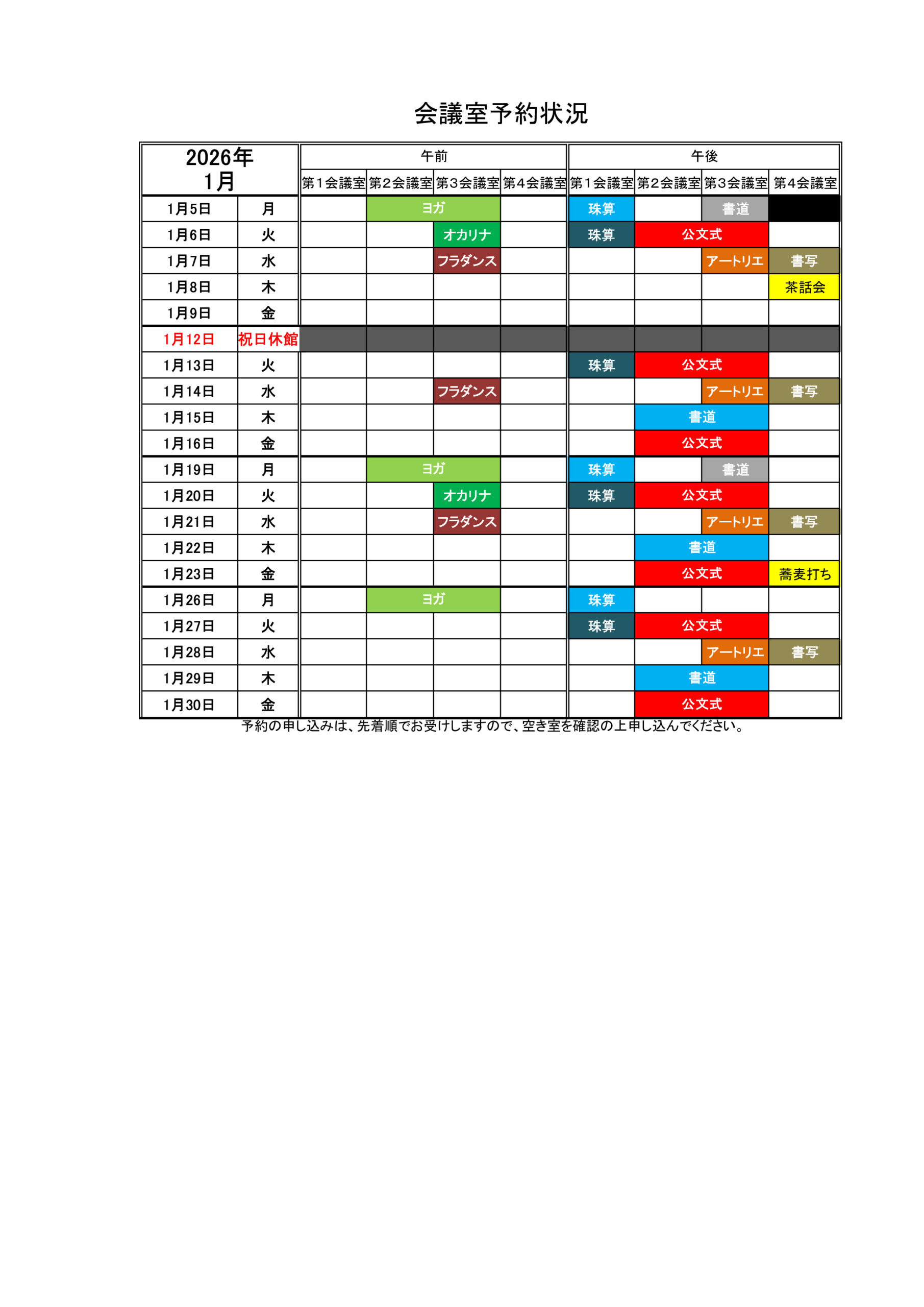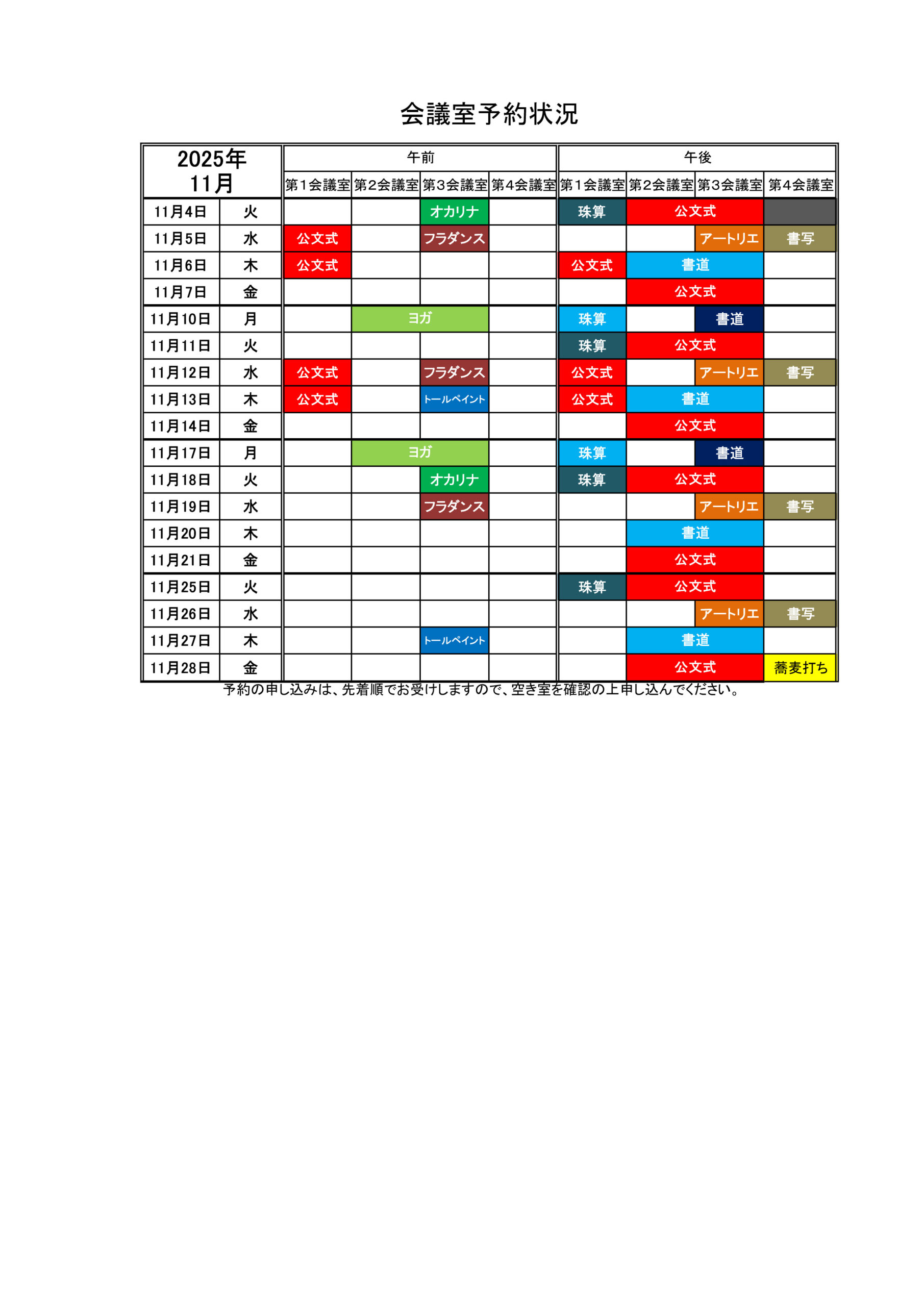 会館予約状況